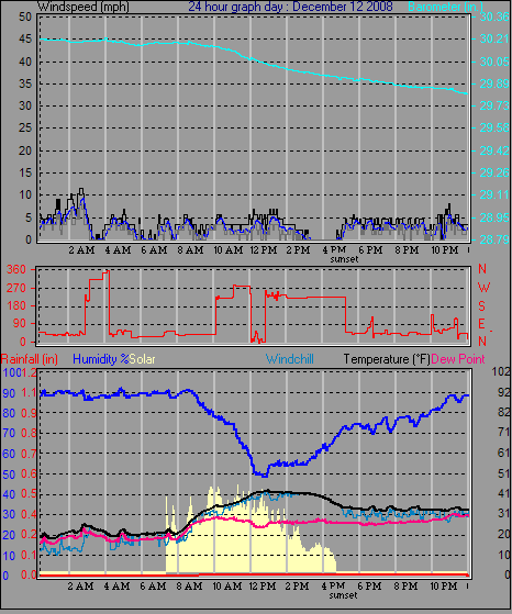 Maximum windspeed = 33.4 mph from 203°(SSW) on day 26 at time 04:39