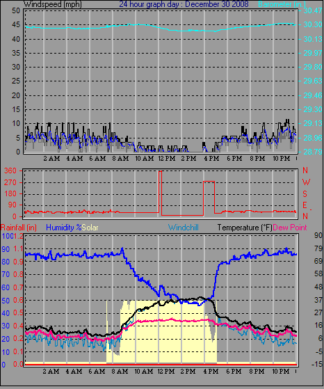 Maximum windspeed = 10.4 mph on day 30 at time 23:08