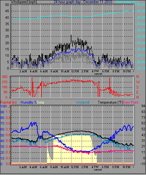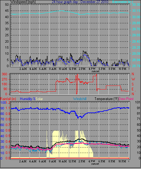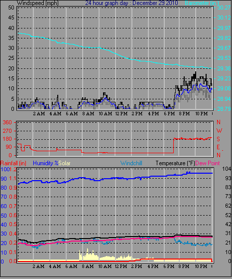 Maximum windspeed = 24.2 mph from 180°( S ) on day 30 at time 10:25