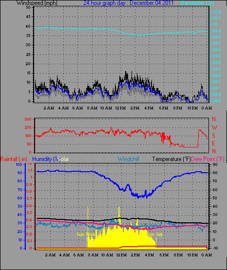 Maximum windspeed = 10.4 mph on day 03 at time 18:37