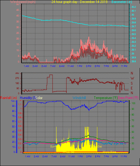 Minimum pressure = 29.70 in. on day 14 at time 23:51