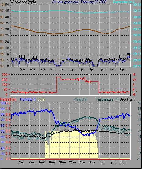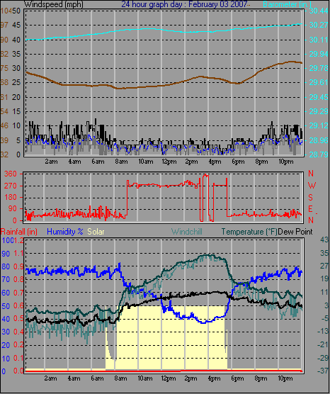 Maximum windspeed 12.0 mph from 035° on day 03 at time 05:41