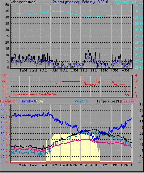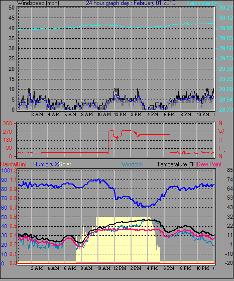 Maximum temperature = 30.0°F on day 01 at time 15:36