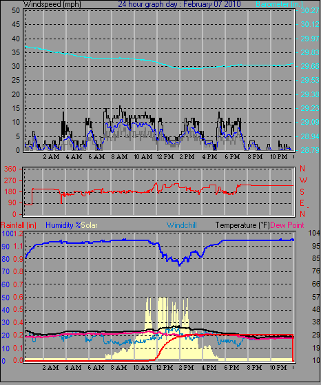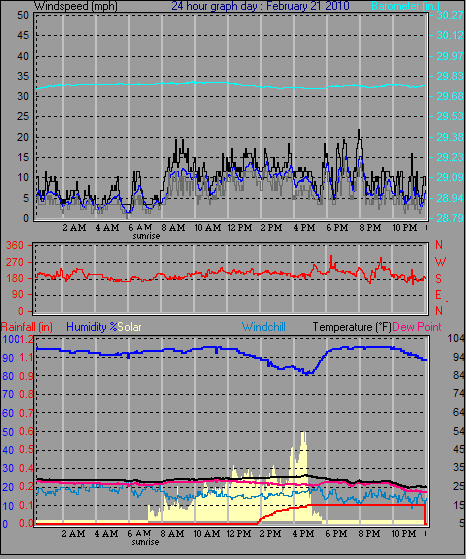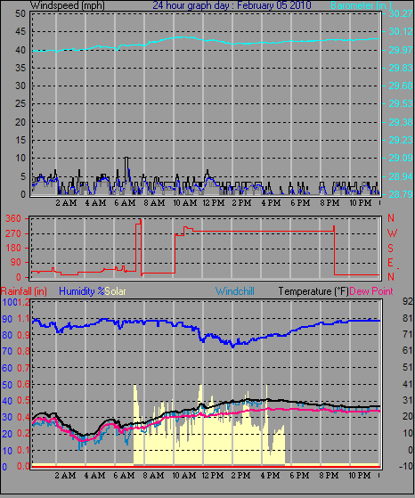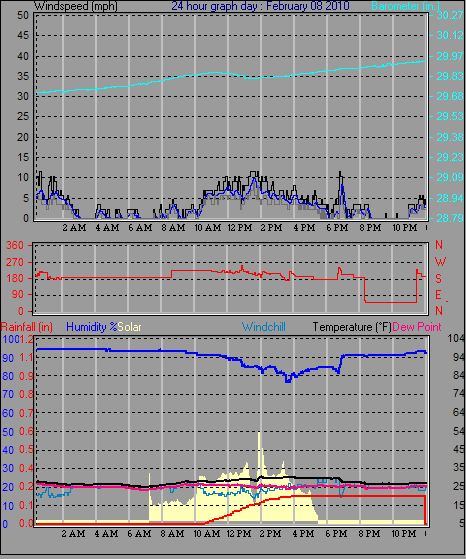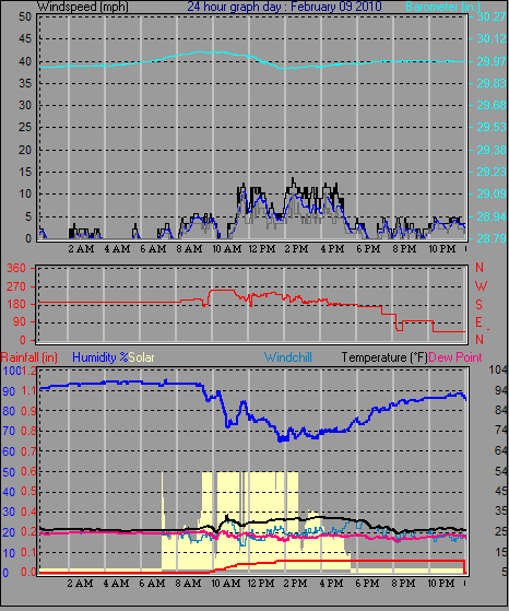 Maximum windspeed = 9.2 mph on day 05 at time 06:53