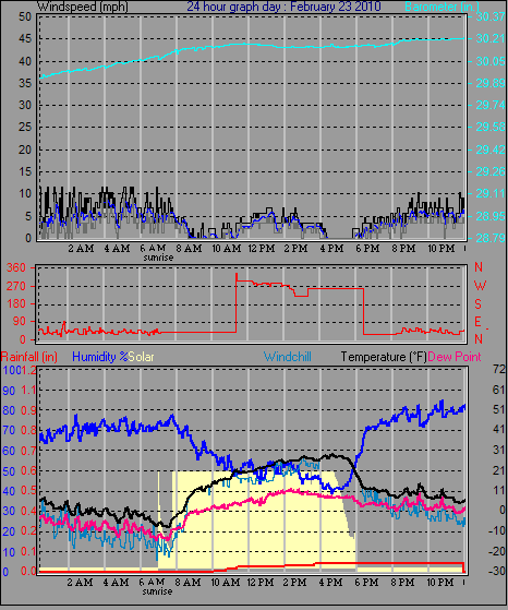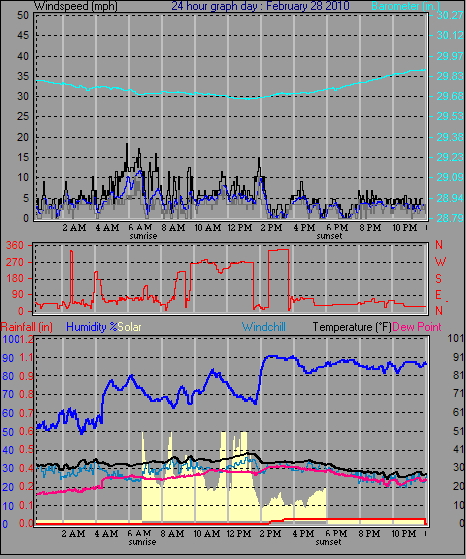 Maximum windspeed = 12.7 mph on day 28 at time 06:41