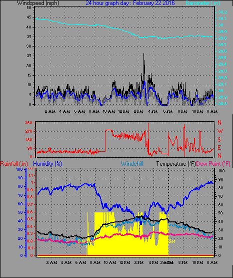 Maximum dewpoint = 33.0°F on day 01 at time 02:04