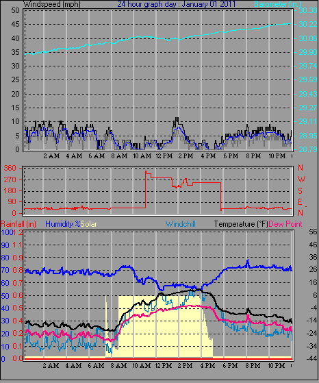 Maximum pressure = 30.231 in. on day 01 at time 23:52