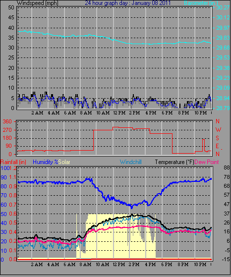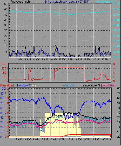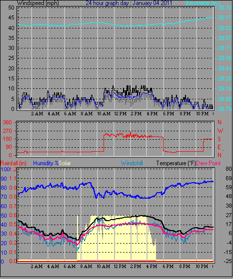 Maximum windspeed = 10.4 mph on day 03 at time 20:24