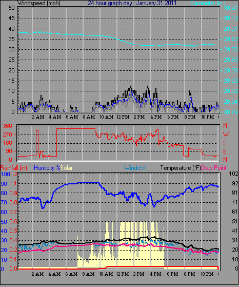 Maximum windspeed = 10.4 mph on day 31 at time 15:42
