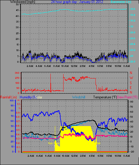 Minimum temperature = 12.2°F on day 01 at time 07:43