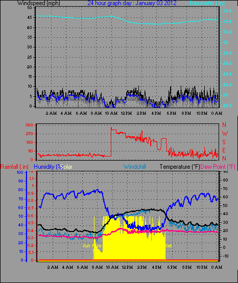 Minimum dewpoint = 12.1°F on day 03 at time 7:43