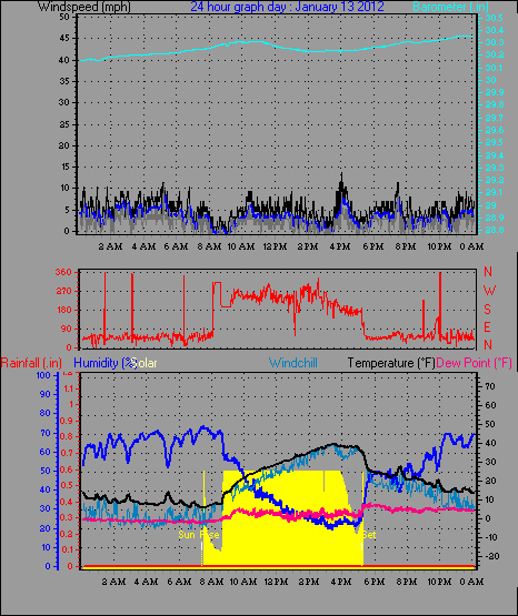 Maximum temperature = 43.2°F on day 01 at time 16:10