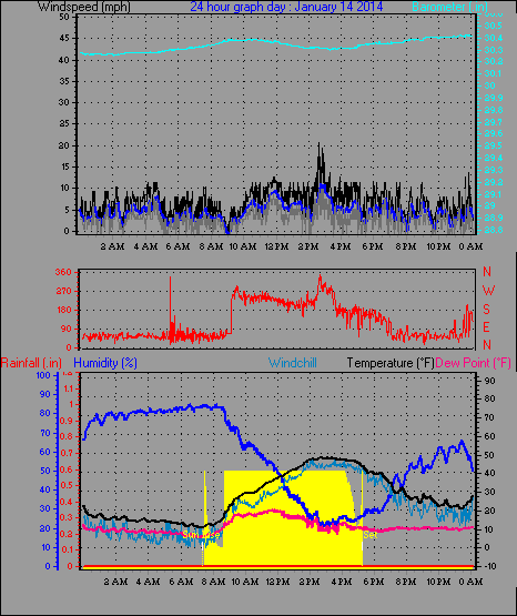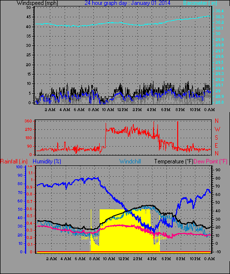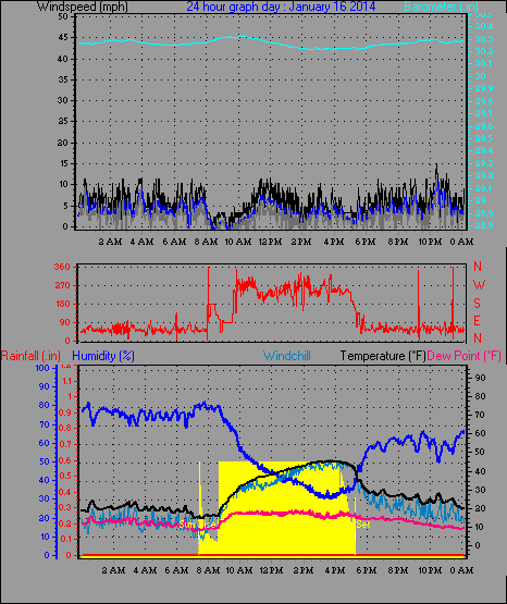 Maximum temperature = 46.9°F on day 01 at time 15:35