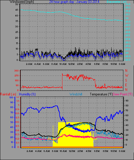 Maximum temperature = 45.6°F on day 03 at time 14:53