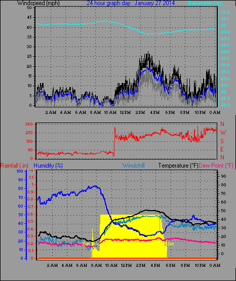 Maximum windspeed = 26.5 mph on day 31 at time 14:25