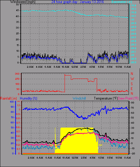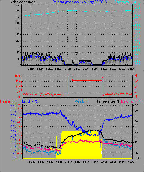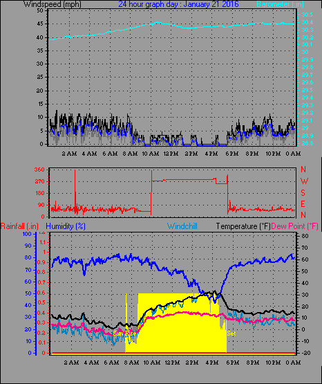 Maximum dewpoint = 19.6°F on day 01 at time 16:11