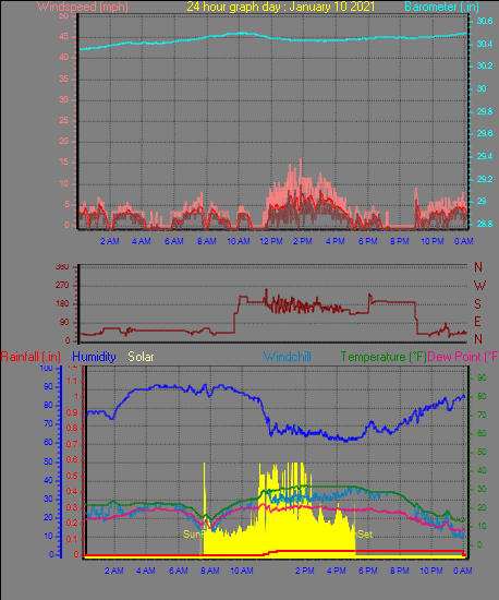 Maximum windspeed = 10.4 mph on day 03 at time 21:47