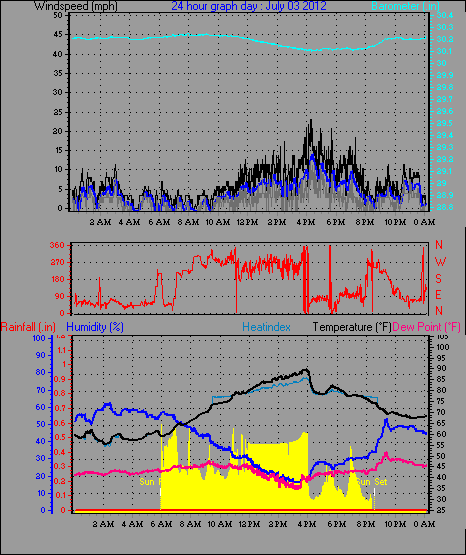 Maximum heat index = 86.0°F on day 03 at time 15:43