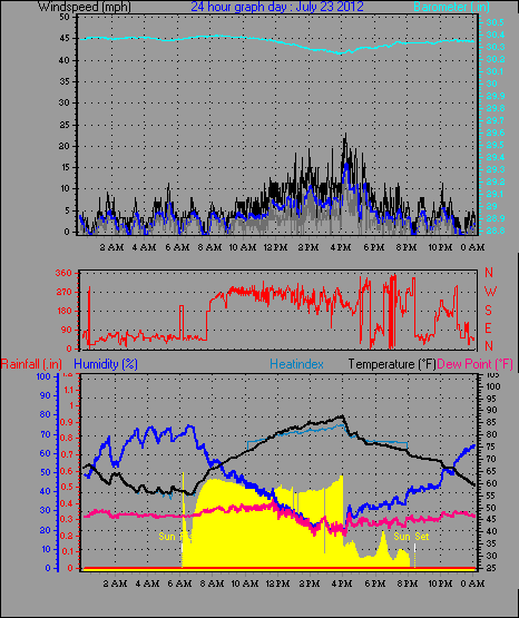 Maximum windspeed = 23.0 mph on day 02 at time 17:30