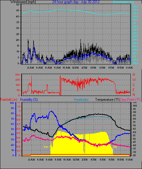 Maximum heat index = 84.4°F on day 30 at time 16:15
