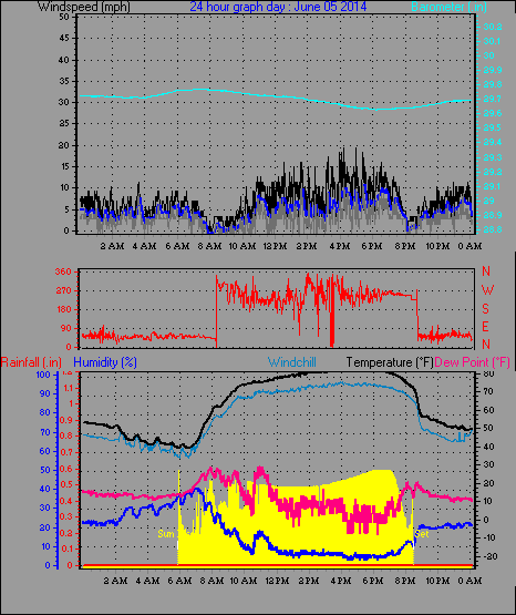 Maximum windspeed = 18.4 mph on day 04 at time 16:02