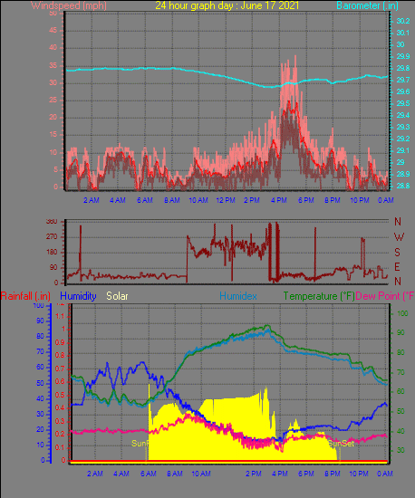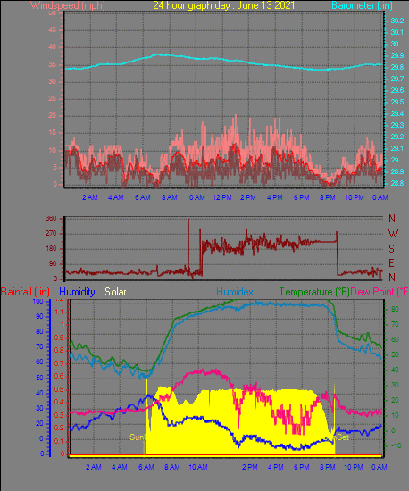 Maximum windspeed = 13.8 mph on day 30 at time 21:06