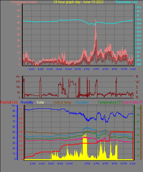 Maximum windspeed = 19.6 mph on day 04 at time 16:40