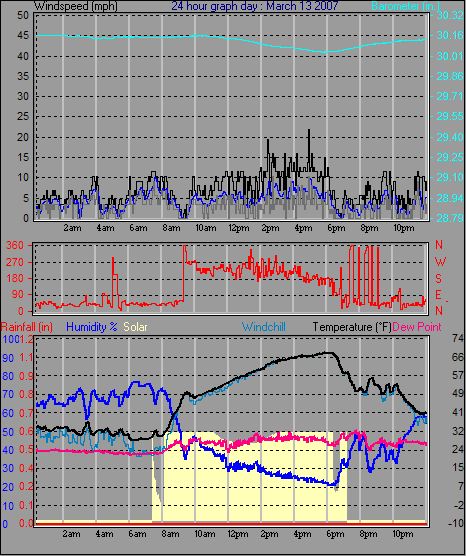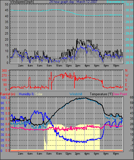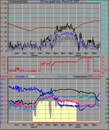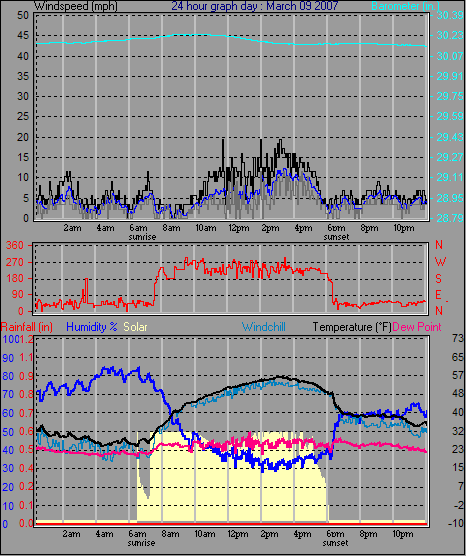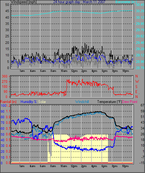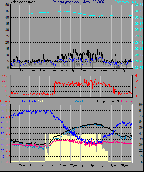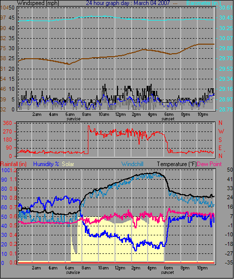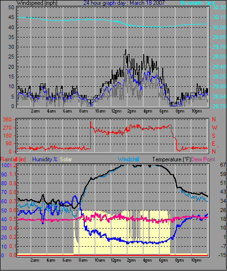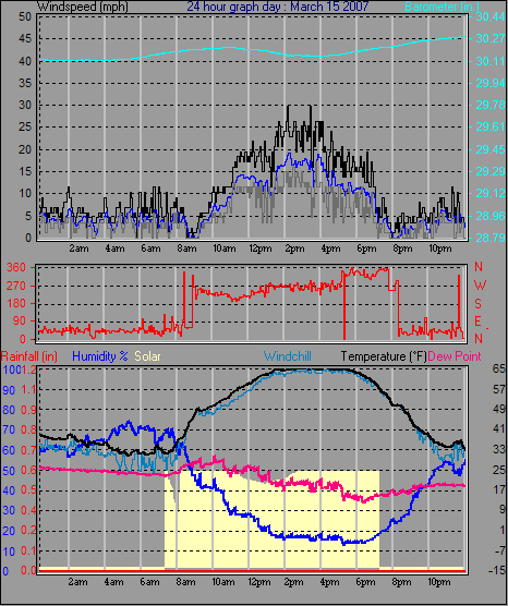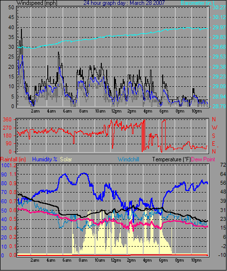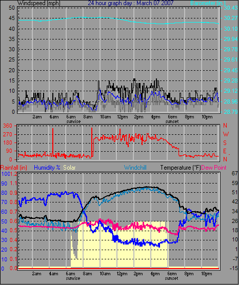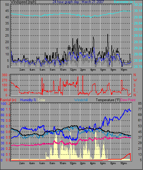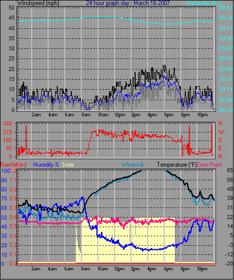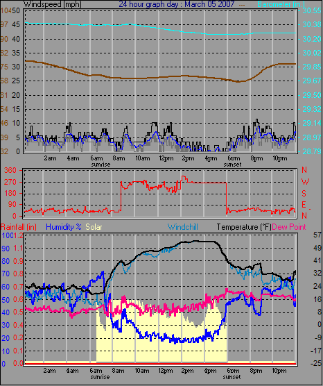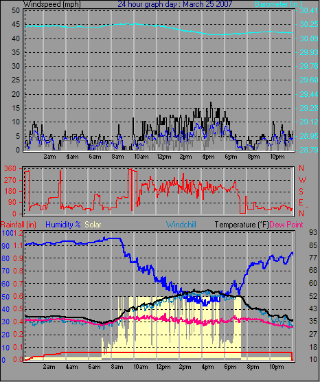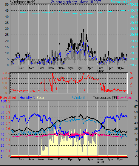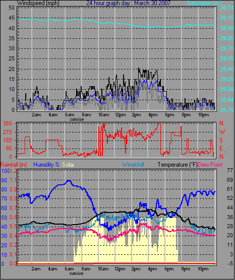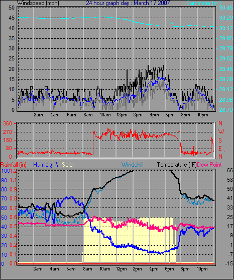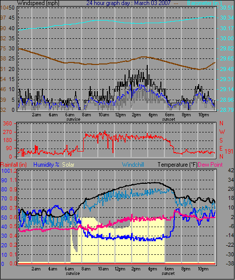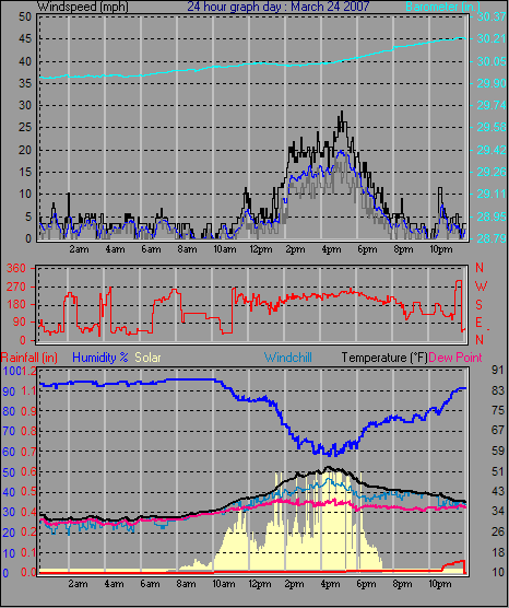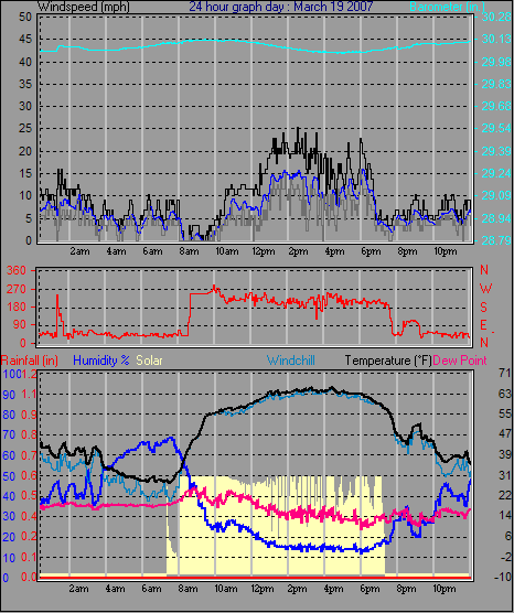 Maximum windspeed 17.0 mph from 204° on day 30 at time 15:47
