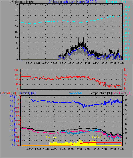 Maximum dewpoint = 31.5°F on day 03 at time 11:05