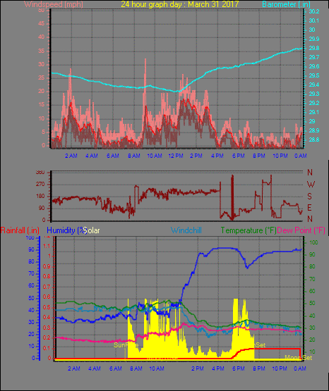 Maximum windspeed = 18.4 mph on day 30 at time 22:37