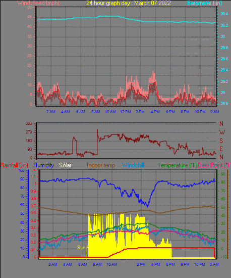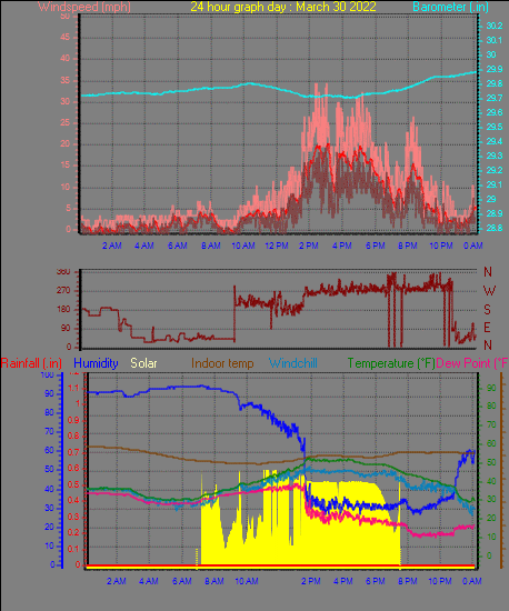 Maximum windspeed = 25.3 mph from 263°( W ) on day 30 at time 15:03