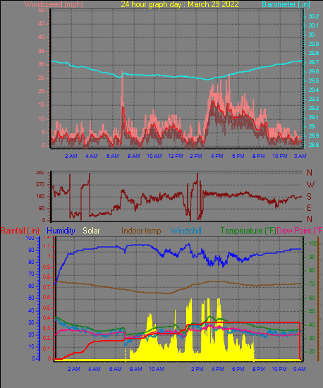Maximum rain per minute = 0.010 in on day 29 at time 13:01
