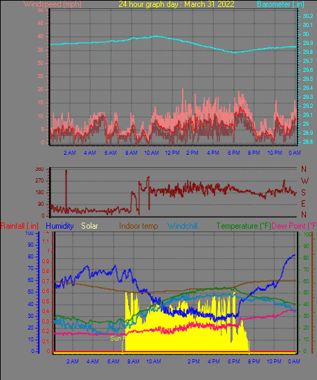 Maximum windspeed = 17.3 mph on day 31 at time 18:32