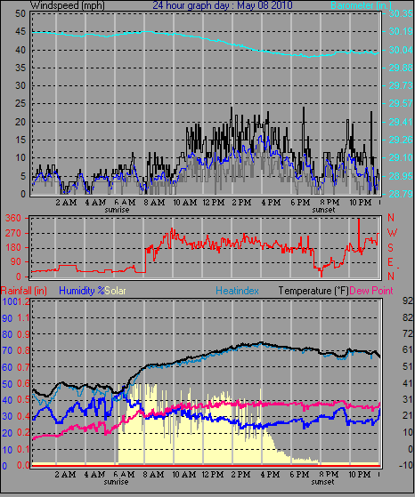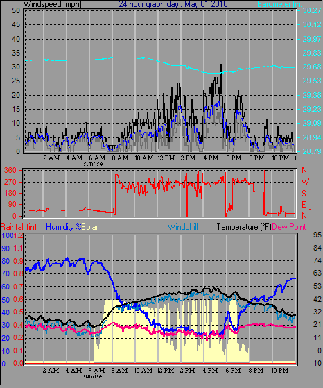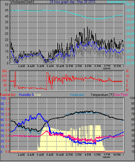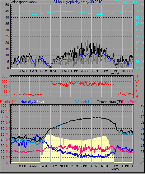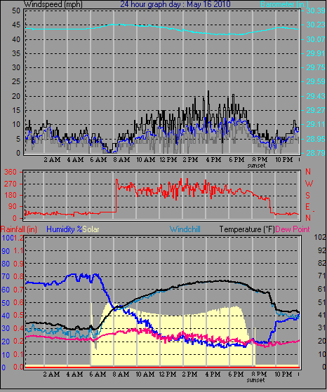 Maximum windspeed = 16.1 mph on day 30 at time 16:09