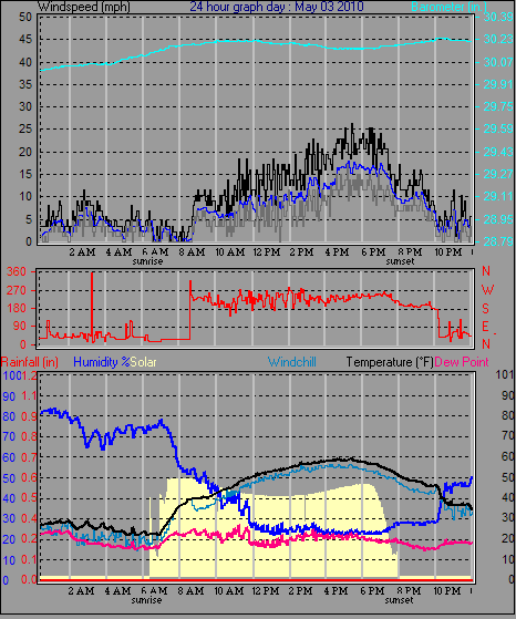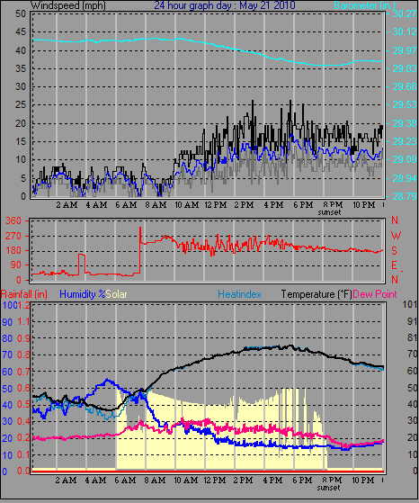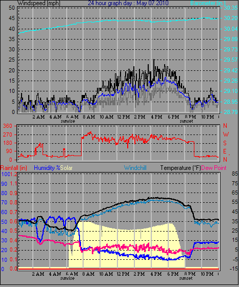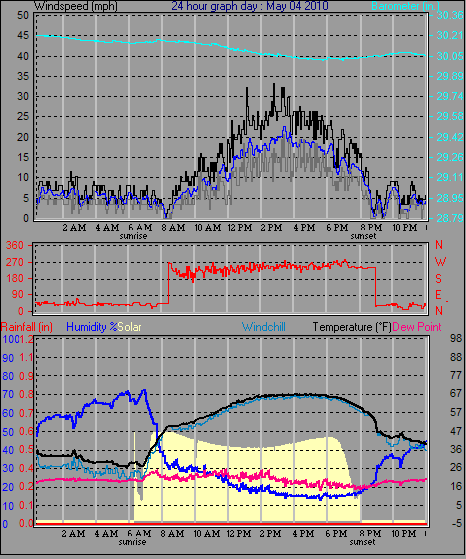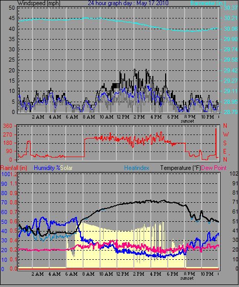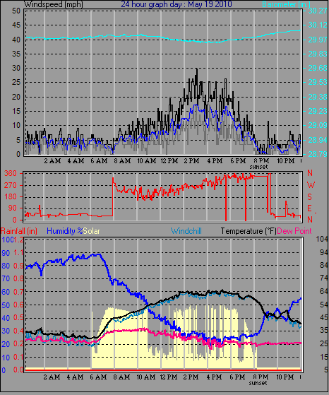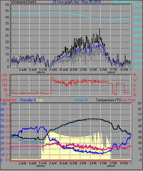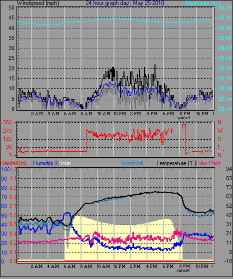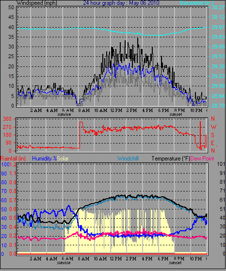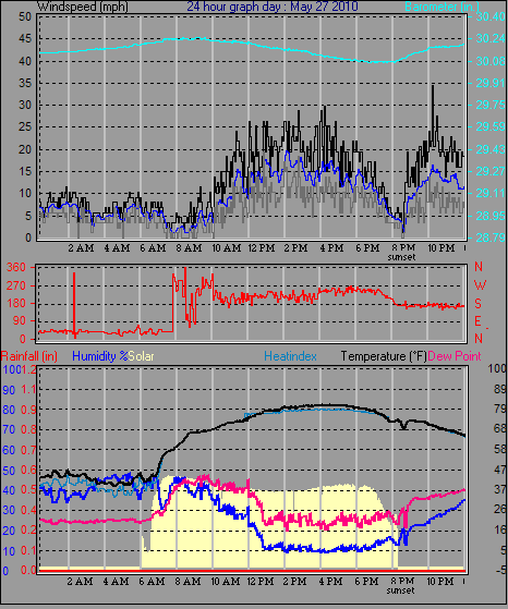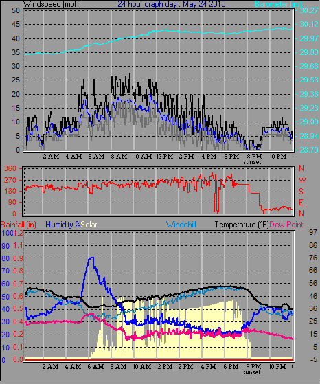 Maximum windspeed = 24.2 mph on day 05 at time 17:53