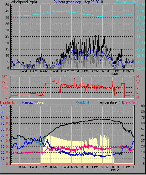 Maximum windspeed = 26.5 mph on day 04 at time 15:16
