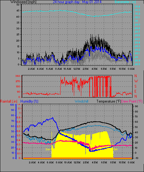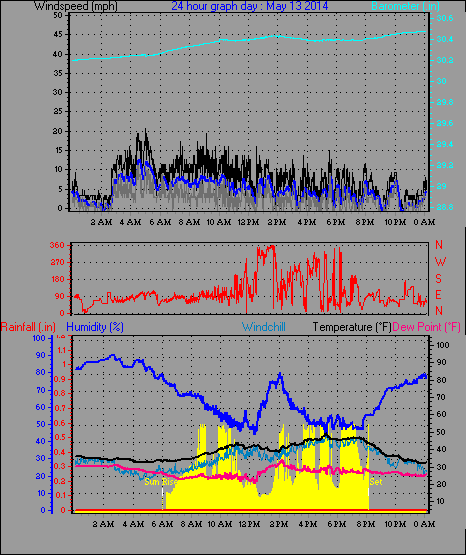 Maximum windspeed = 13.8 mph on day 30 at time 13:06