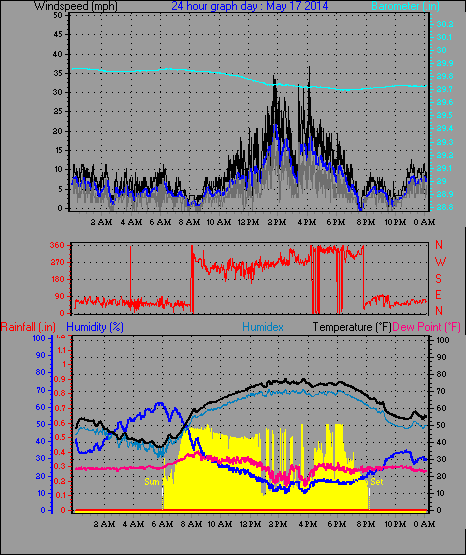 Maximum windspeed = 17.3 mph on day 02 at time 16:48
