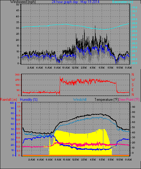 Maximum windspeed = 19.6 mph on day 31 at time 14:47