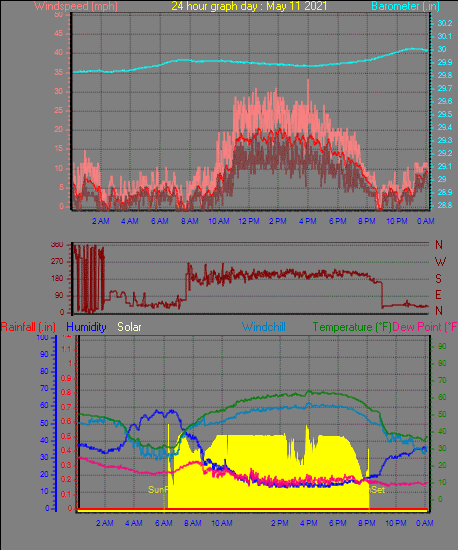 Maximum windspeed = 18.4 mph on day 30 at time 15:11