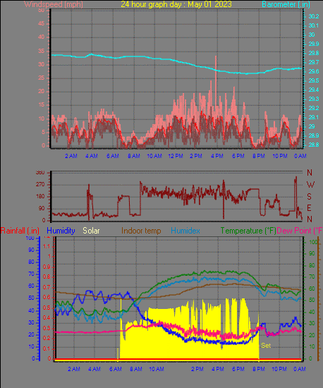 Minimum dewpoint = 22.5°F on day 30 at time 11:39