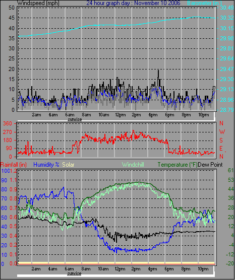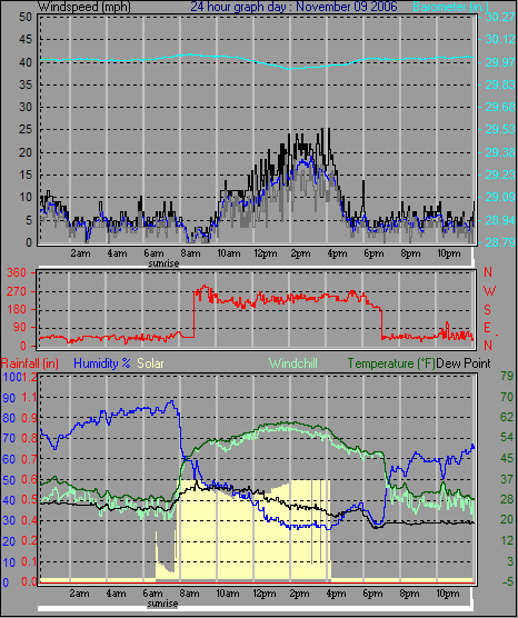 Maximum windspeed 9.0 mph from 052° on day 30 at time 02:31