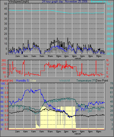 Maximum windspeed 15.0 mph from 199° on day 29 at time 15:37