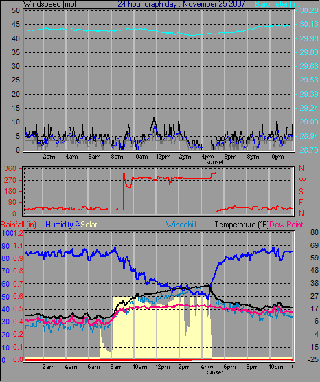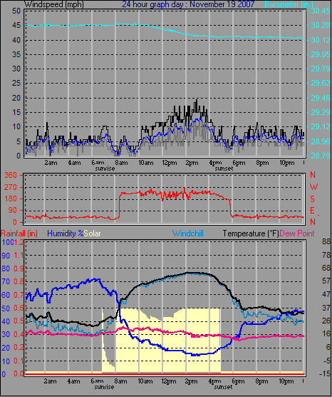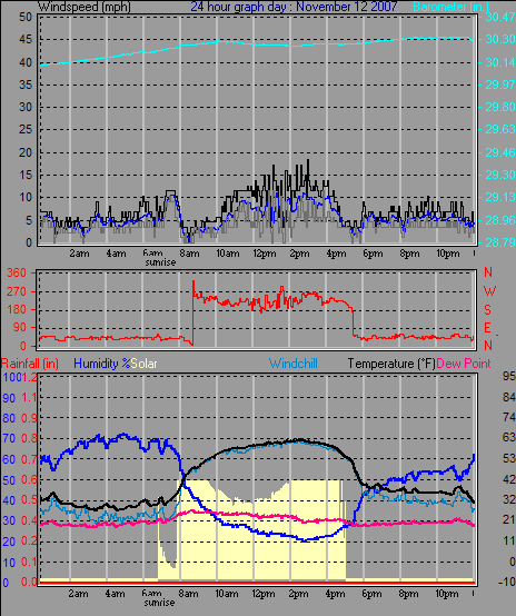 Maximum windspeed 12.0 mph from 050° on day 29 at time 06:51