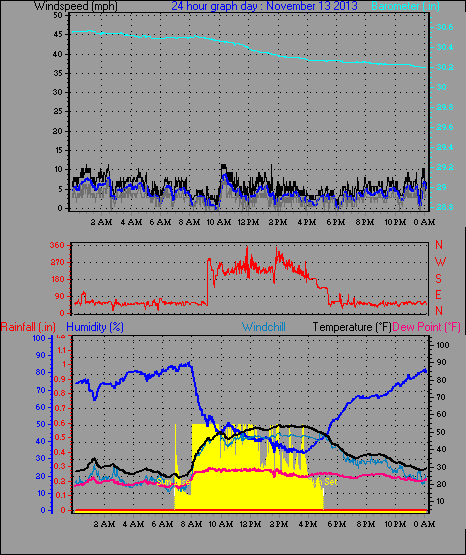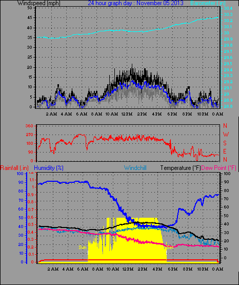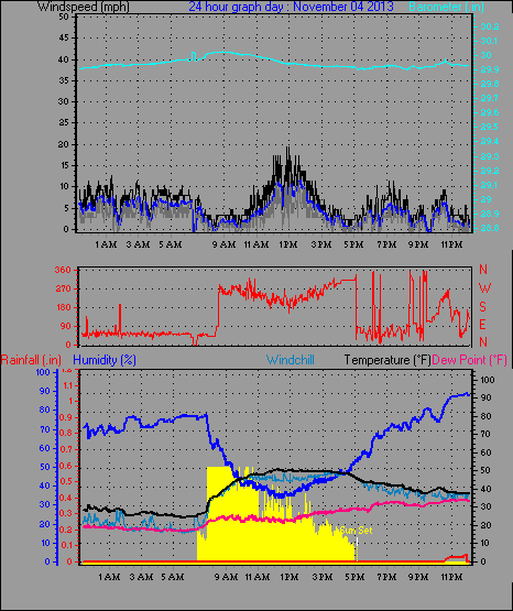 Maximum windspeed = 13.8 mph on day 04 at time 13:38