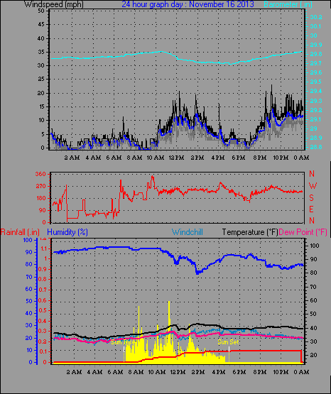 Maximum windspeed = 18.4 mph from 270°( W ) on day 16 at time 21:07