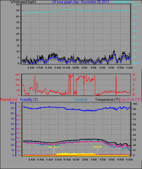 Minimum temperature = 25.1°F on day 30 at time 07:37