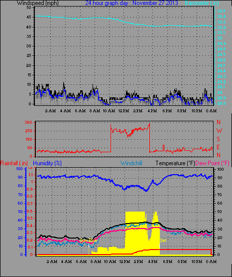 Minimum temperature = 27.8°F on day 03 at time 23:38