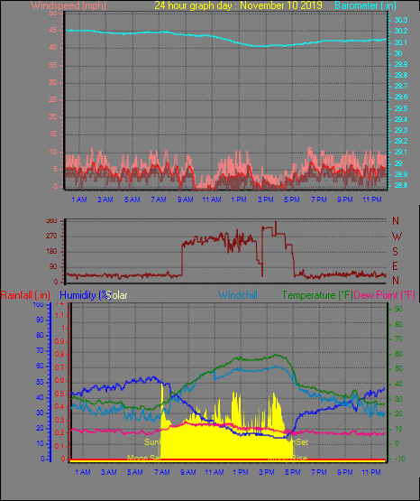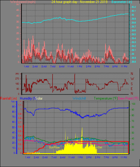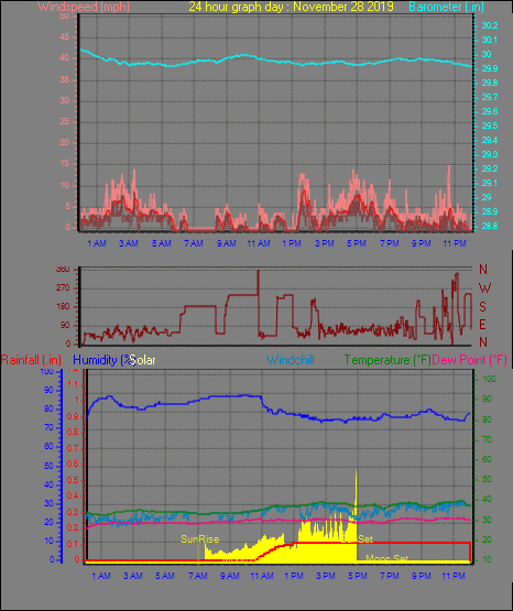 Maximum windspeed = 32.2 mph from 223°( SW) on day 29 at time 16:49