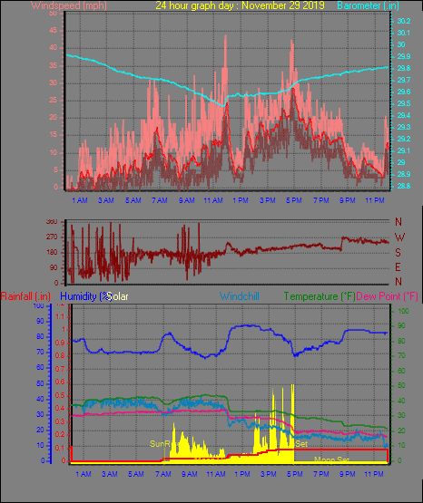 Maximum windspeed = 32.2 mph on day 29 at time 16:49